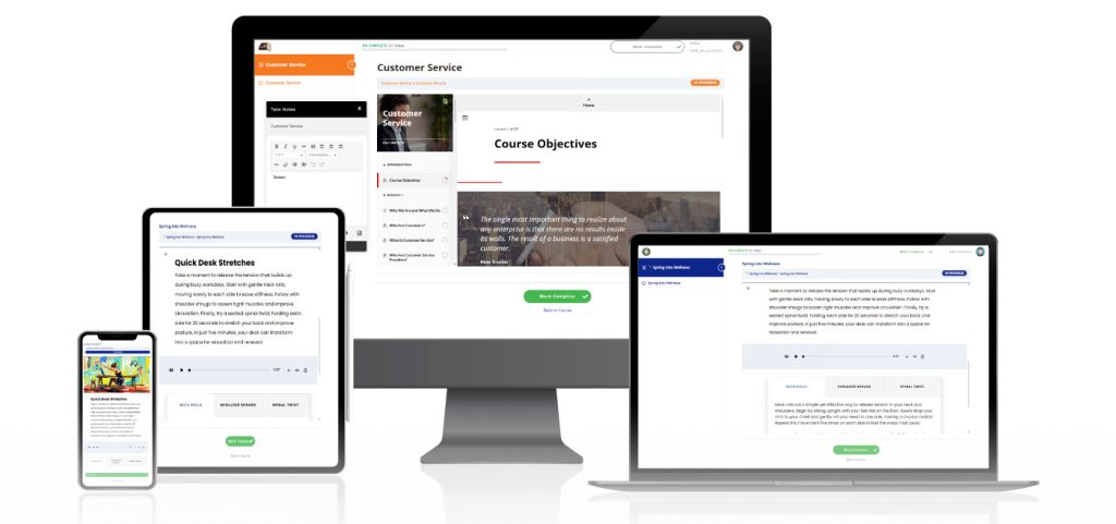 ELITELMS displays content across multiple devices (desktop, tablet, mobile)